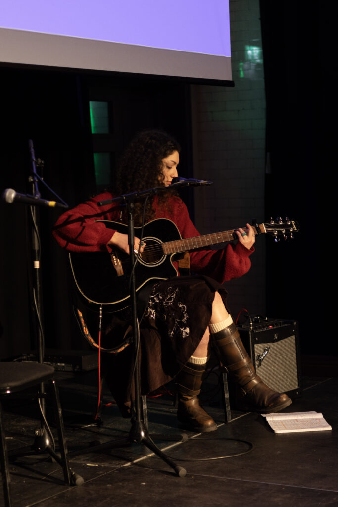 As we were ushered into a room with rows of chairs and a lit-up stage, we were treated to some classic tunes from singer Lilia Dandache on her guitar. Eventually, our compere, Chair of the Board of Trustees Rachel Clark, came to the stage to open our evening’s proceedings. In her welcome speech, she listed the many ways individuals have contributed to and participated in the One25 journey, highlighting the unique stories each person has brought and how individual efforts combine to create a powerful collective impact. She ended by saying: