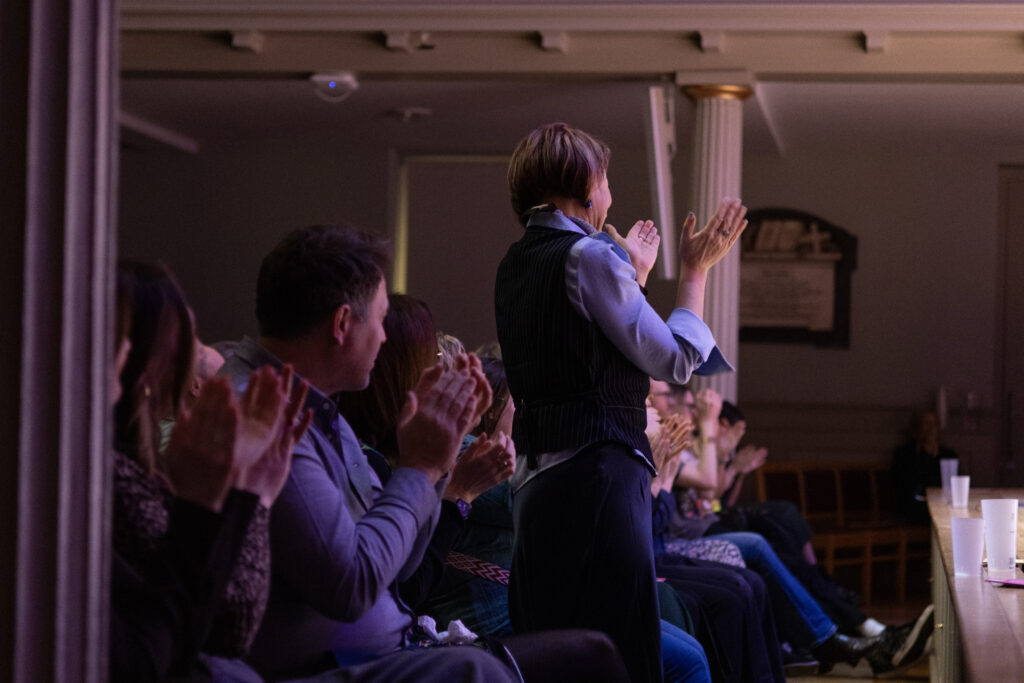 During the interval, we learned more about One25’s Voices for Change campaign, which seeks to raise awareness about women who are street sex-working – women who are often unseen and unheard in society. We signed One25’s statement of solidarity and shared it with our networks. It was one of those stand-out moments that really stayed with us – looking around and seeing so many people stop, take out their phones, and sign the statement together.